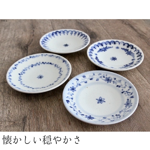 美濃焼の窯元、正陶苑さんで焼かれた、なんだか穏やかな気持ちになる染付の器です。 こちらは径15cmほどの取り皿。お酒のあてや、おやつの盛り付けなどにちょうどいいサイズ感です。 安南焼をモチーフしています。 絵付けはすべて手書きなので個体差があります。また貫入(釉薬の表面がヒビのように見える模様)や鉄粉の混入など手作りの味わいをふんだんに感じさせます。 安南はいまのベトナムの一部にあたる地域で、室町時代末期から江戸時代にかけての交易で日本にも安南のやきものが渡来し、茶器として珍重されました。柔らかい乳白色の貫入やにじみのある生地に、トンボなどの絵柄を赤絵や呉須染付で仕上げたのが特色です。 そんな安南焼の空気感を、今の時代にあわせて作られたシリーズです。 絵柄は4タイプありますので、下部にスクロールして「種類を選択する」 からお好きなものをお選びください。 おことわり 貫入は模様として焼成の際意図的に入れられているものです。これが理由で割れることはありません。 鉄粉も同じように、雰囲気をだすため鉄分をまぜた土を焼成し意図的に生じさせているもですのす。 また、1点ずつ手作りのため、サイズに微細な違いや、絵付けも手書きのため個体差があります。 これらは不良品の対象とはなりませんので、ご検討の上ご購入お願いいたします。 サイズ:径150×高さ25mm 素材:陶器 生産国:日本(美濃焼) 製造:正陶苑 販売:EDITONS(ユープロダクツ) 電子レンジ、食洗機、オーブン不可 この商品単品でのご購入は60サイズでの出荷となります 運賃目安重量は300gです 運賃設定についての詳細は https://tompolotable.theshop.jp/p/00004 をご覧ください