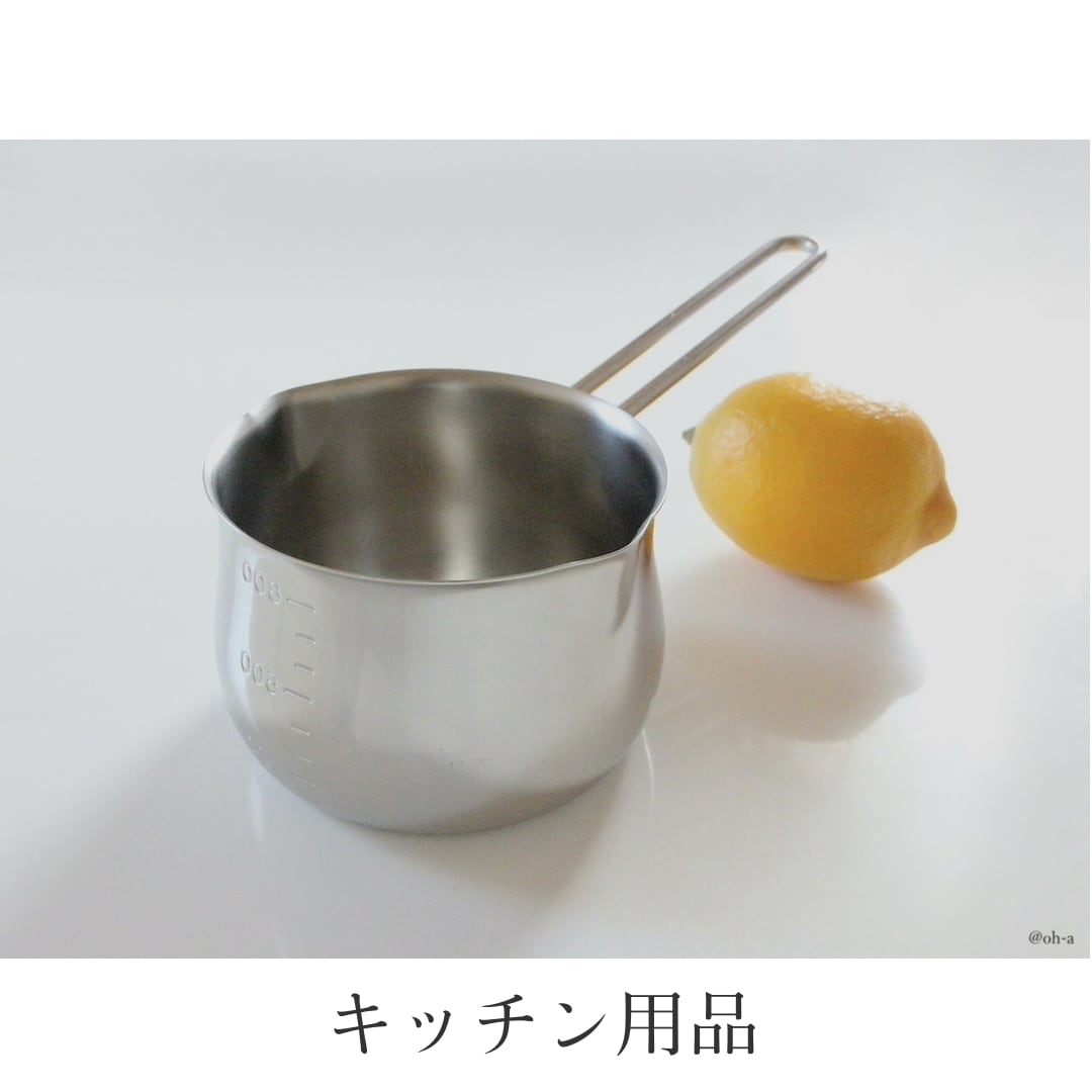 琺瑯製のビーカーです。 印版で押され、あきらかに曲がっている目盛がすでに当てになりませんが「メヤス」とありますので、なんらかの作業の際、おおまかにこれくらいの液体を入れるという事を繰り返す仕事のため作られた道具なのではと想像します。 調理道具としてだけではなく、さまざまな仕事に使われている道具なのでしょう。 ですので、家庭料理の軽量用カップとして使うことを考えると正確さは求めないほうがよいでしょう。 ミキシングボールに使ったり、直火にもかけられますから、暮らし方によっていろいろ用途はあるかと思います。ツールスタンドなどにされてもいいかもしれません。 ただ良い意味で、適当さとアナログなフォルムが、お台所にあるとなんだか落ち着く、かわいい道具です。 用の美といいますが、無用の美というものもあるのかもしれません。 紺と白のコントラストのフォルムはなんだか、夢野久作など戦前のあやしい探偵小説に出てくる科学者の実験室の道具のようでもあります。 3サイズありますが、いちばんちいさい500mlのものだけ扱います。 おことわり 内側の目盛りは印判で押しているもので、曲がっていないものはありません。軽量の数字も正確ではありません。 工程上、隅の部分や縁の裏側など釉薬がかかりにくく、どうしても素地にかけた黒い下釉薬部分がうっすらと見える作りになりますが、これは欠けではありません。 釉薬を塗る際、縁の部分を針金に引っかけて作業するためその部分に黒い穴の跡が必ず残ります。 釉薬のムラによる凹凸ができたり、焼成時ちいさな黄色い焼け跡が残ることがあります。 これらはメーカーの基準で良品として出荷されていますので、返品交換の対象とはなりません。 以上ご理解の上ご購入ください。 サイズ: 全体幅170×奥行105×高さ109mm 容量:500ml(満水時) 重量:260g 素材:鋳物ホーロー 生産国:日本 メーカー:野田琺瑯 この商品単品でのご購入は60サイズでの出荷となります 運賃目安重量は480gです 運賃設定についての詳細は https://tompolotable.theshop.jp/p/00004 をご覧ください