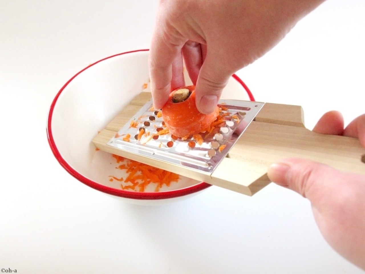 そこで、にんじんが穴に引っかかりやすいよう改良し、いまではしりしり用の道具として定着しているようです。キャロットラペ用に買われる方も多いようです。