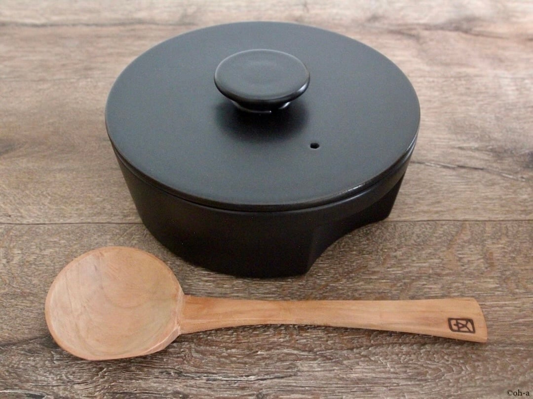 木製という素材の特性もありますが、洋風のお鍋に使っても違和感なく絵になり、土物だけでなく琺瑯や金属製のおを傷つけず、安心して使えるという実用面での有用性も備えています。