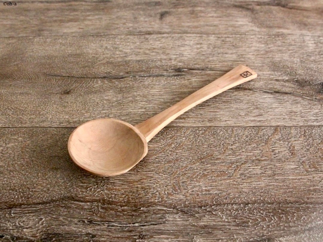 白木お玉(豆)18cmはひとりで取り分けとレンゲとして使うサイズ。ラーメンやうどんなどにも便利にお使いいただけます。