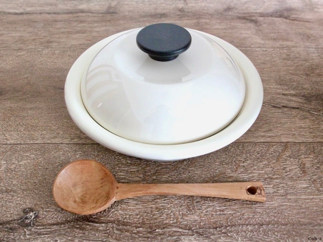 木製という素材の特性もありますが、洋風のお鍋に使っても違和感なく絵になり、土物だけでなく琺瑯や金属製のおを傷つけず、安心して使えるという実用面での有用性も備えています。