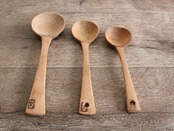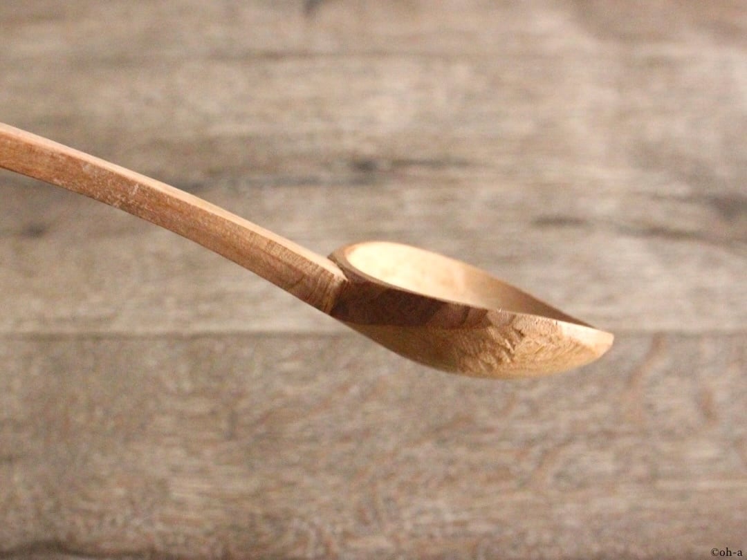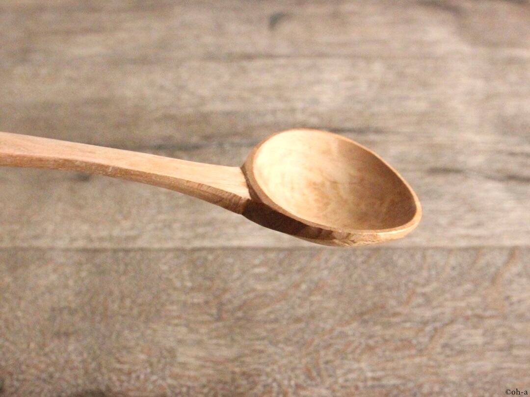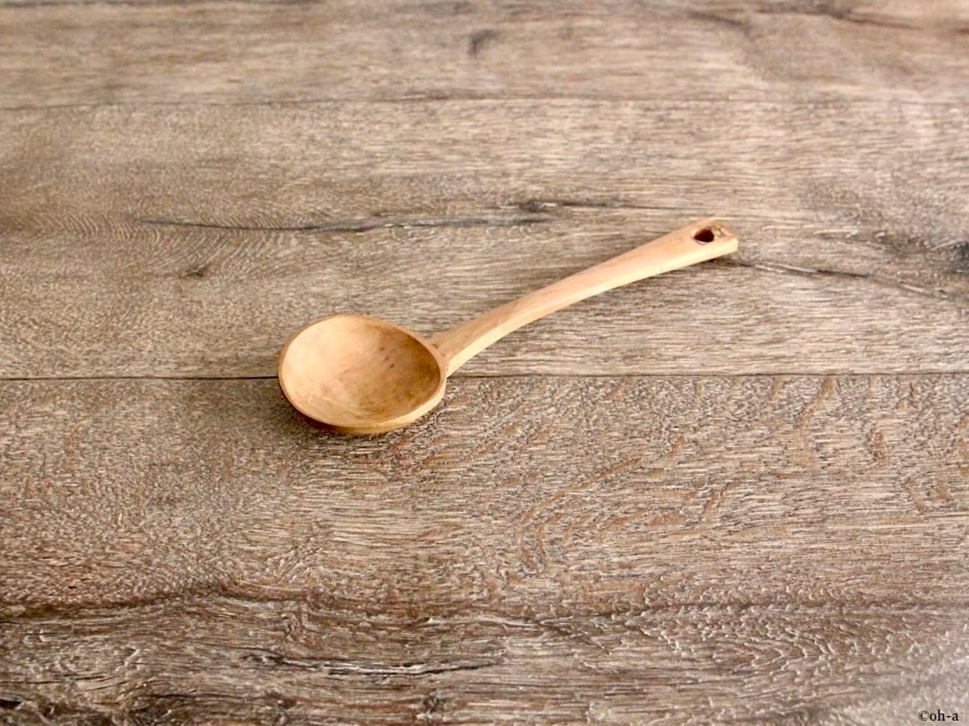 白木お玉(豆)18cmはひとりで取り分けとレンゲとして使うサイズ。ラーメンやうどんなどにも便利にお使いいただけます。