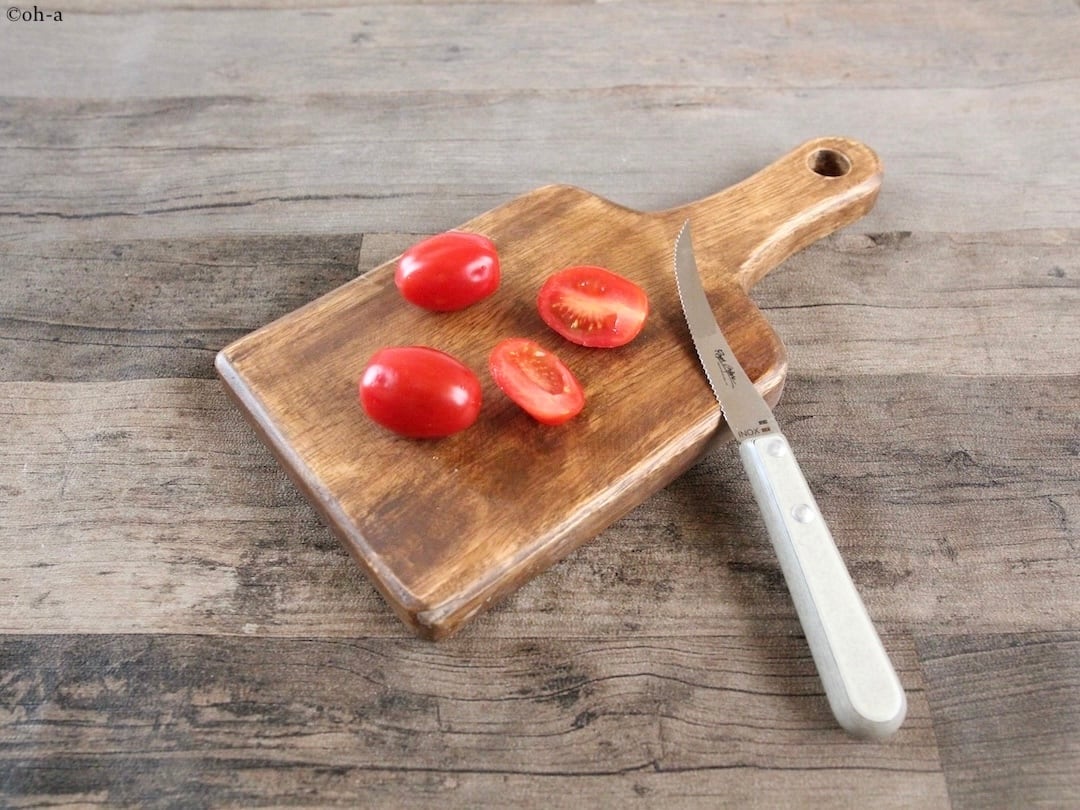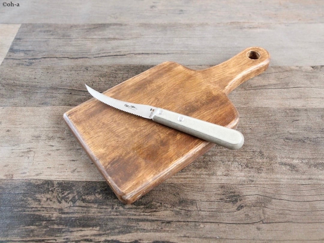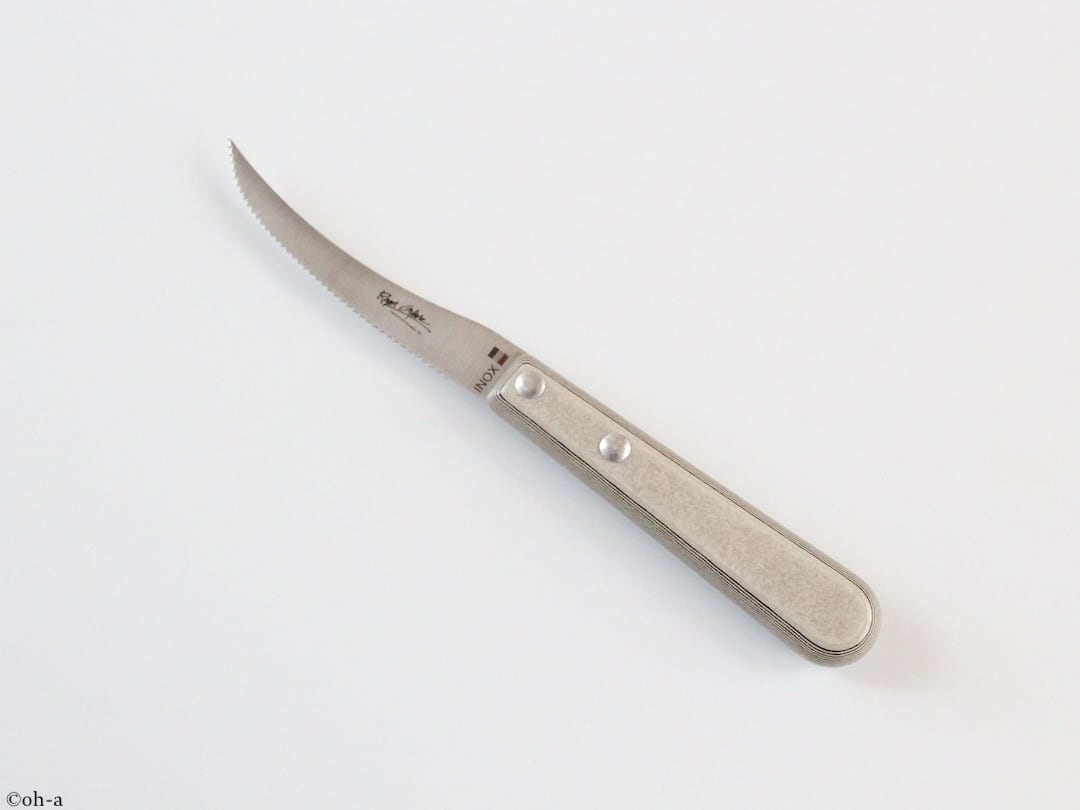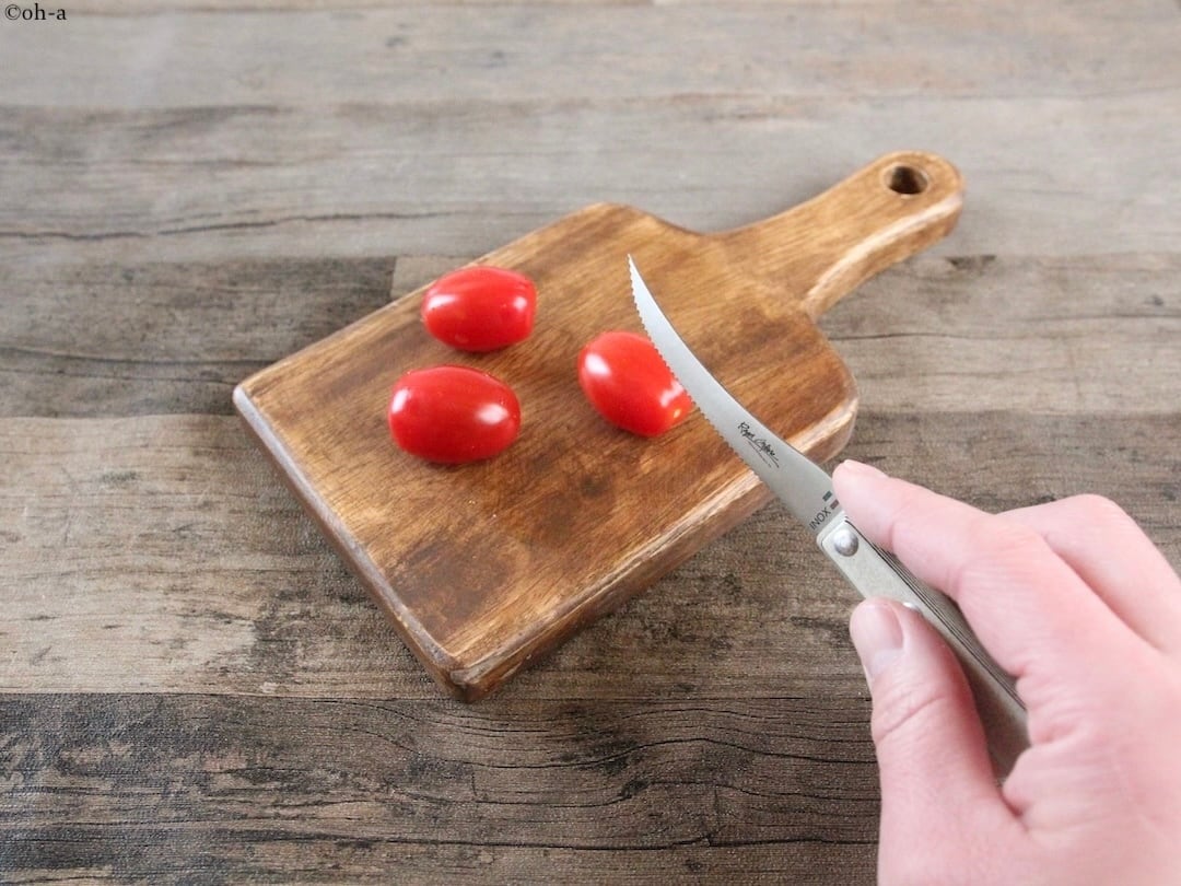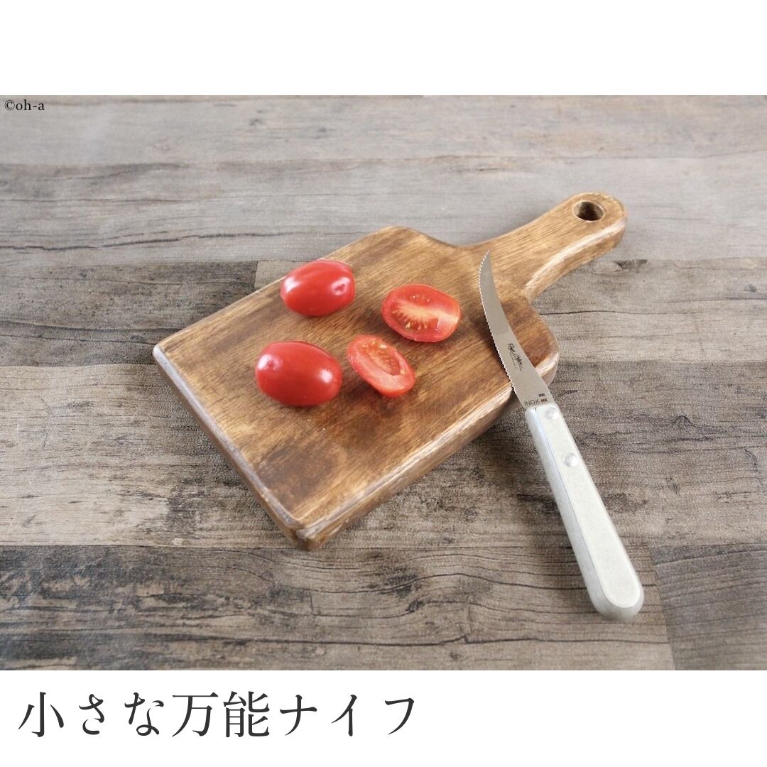 刃渡り80mmあまり、全長180mmほどのちいさなフランス生まれのトマトナイフですが、代理店ではスペシャリテナイフとして販売しています
