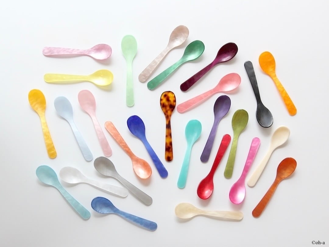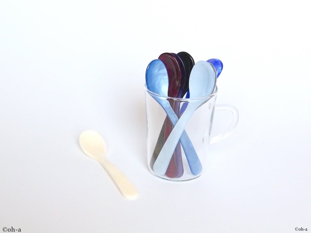 アクリル素材(プレシキグラス)製の軽くて握りやすく口当たりの優しいスプーンは、赤ちゃんの離乳食や、高齢の方の介護食向けなど世代を問わず使える汎用性の高いアイテムです。