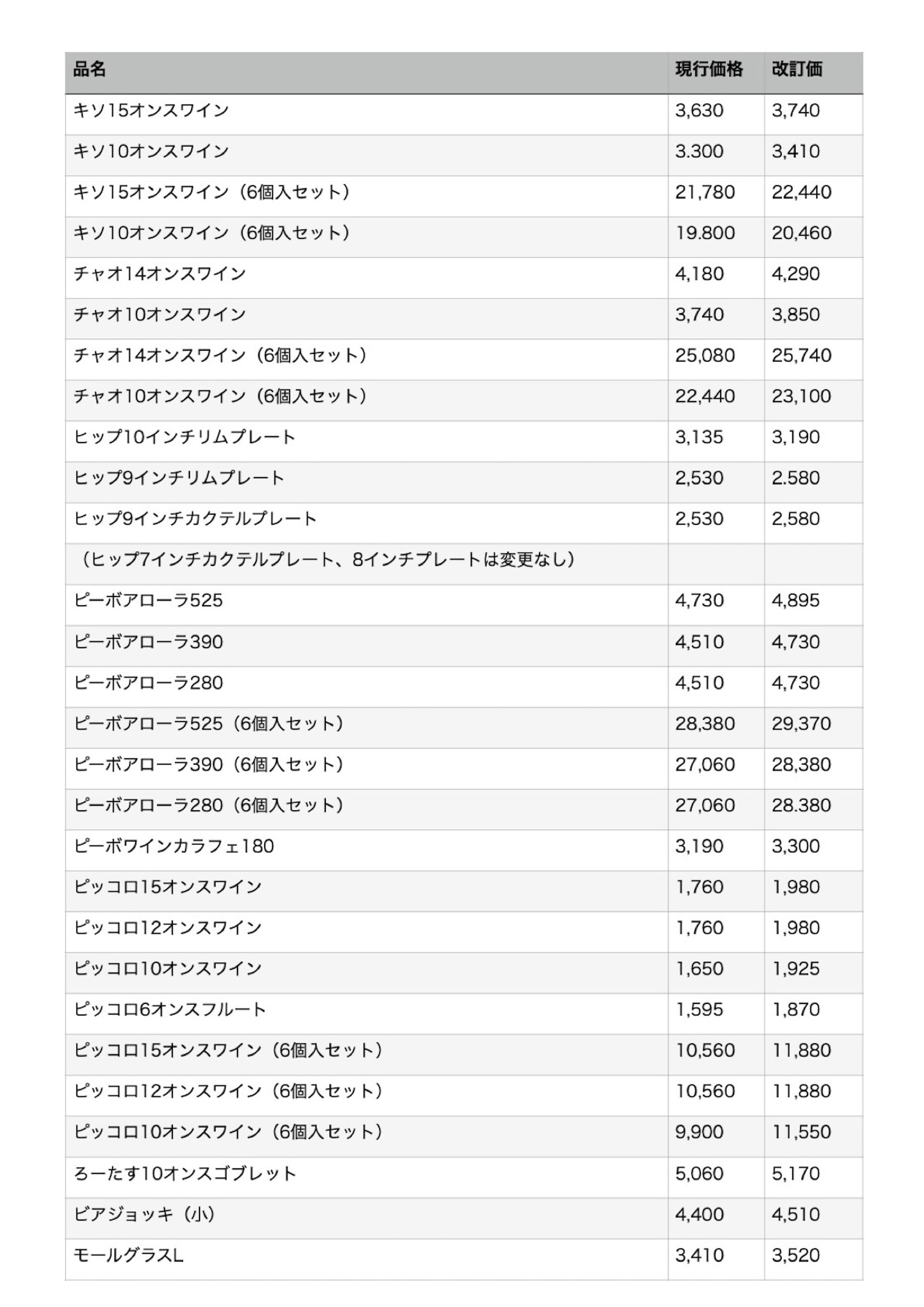 木村硝子店価格改定リスト | 食器と台所道具 tompolo